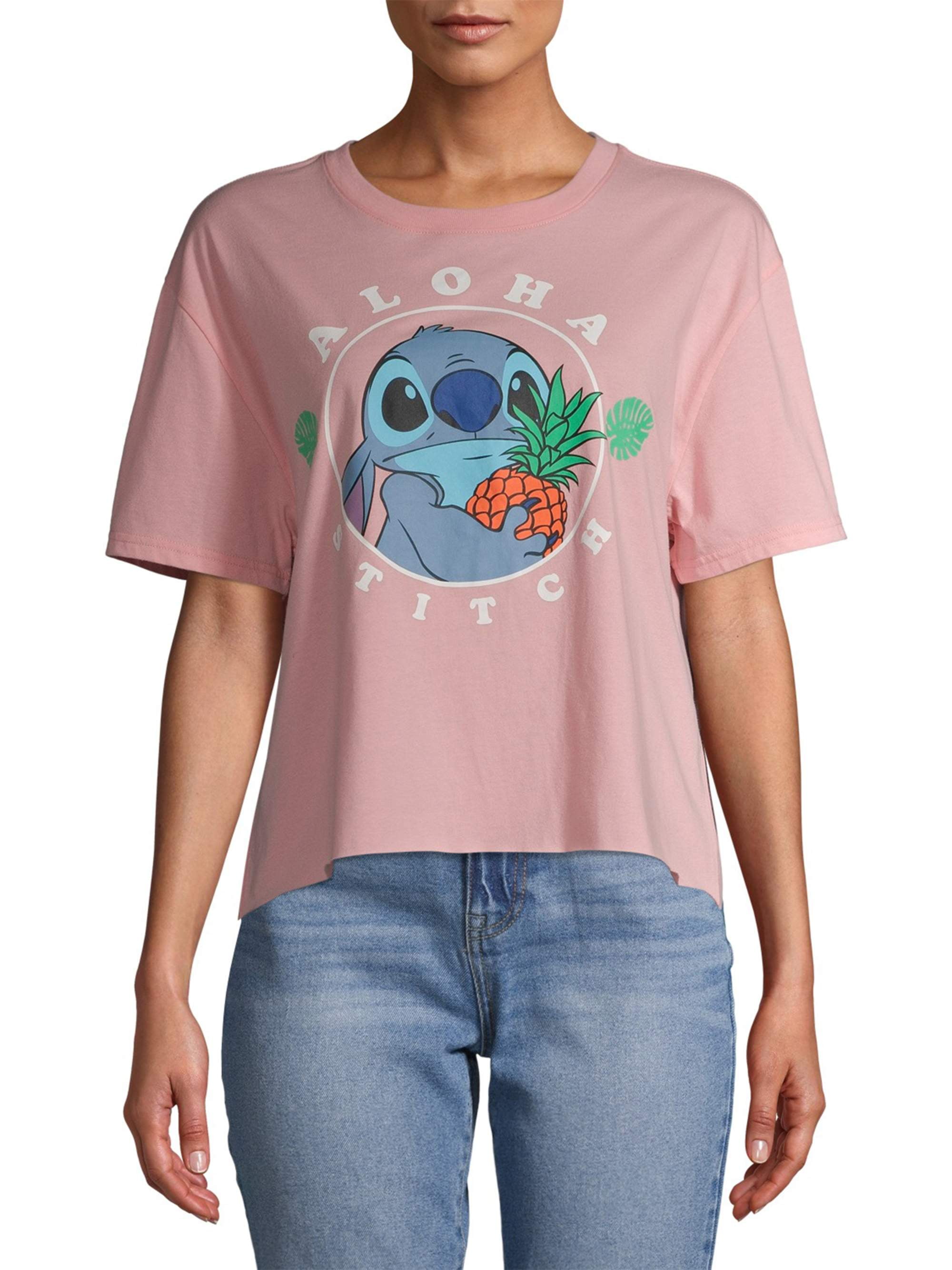 Juniors Stitch Aloha Drop Shoulder Graphic T Shirt Walmart Com